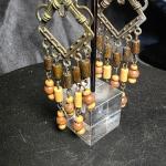 Vintage Boho Chandelier Earrings With Wood Beads & Aged Metal (3 photos)