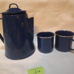 Vintage blue speckled enamelware coffee pot and cups… Read More →