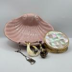 Lot 132K: Pink Shell Dish, Abalone/Mother Of Pearl Compact & Shell Pendants (15 photos)