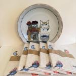 Lot 160K: Highland Stoneware Scotland Cat Bowl & Bird Cloth Napkin Sets Nip (8 photos)