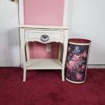 Lot 117Z: Side Table With Drawer & Floral Wastebasket (13 photos)
