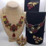 Lot K75: Collection Of Amber Tones-Statement Necklaces, Joan Rivers Cherry Brooc (14 photos)