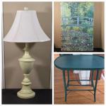 Lot 200L: Vintage Style Table Lamp, Wicker & Wood Table & Claude Monet Poster (35 photos)
