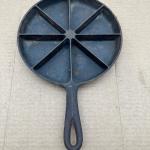 Classic vintage cast iron cornbread skillet featuring an 8-section wedge design,… Read More →