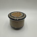 Hand-thrown studio pottery lidded jar featuring a natural earth-tone glaze with… Read More →