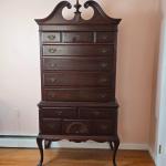 Lot 155: Solid Wood Queen Anne Chippendale Style High Boy Chest Dresser (13 photos)