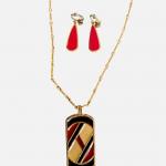 Vintage Designer Jewlery Long Gold Geo Enameled Necklace & Tear Drop Earrings Lo (4 photos)
