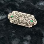 Lot 188: Vintage White Gold With Gemstone Filigree Brooch - 14Kt, Tw 4.32G (7 photos)