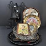 Lot 208: Vintage Painted Floral Serving Trays, Wrought Iron Wall Sconces/Candle (29 photos)