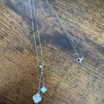 Details: Silvertone necklace with two dangle pendants in clover shape with milky white… Read More →