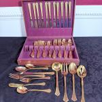 Lot 288: Royal Gallery 66 Piece -Tone Flatware Service Set In Wooden Chest (9 photos)