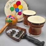 Lot 89D: Egyptian Bastet Sistrum, Bongo Drums, Maraca, And Tambourine (10 photos)
