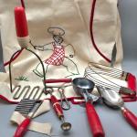 Lot 23D: Vintage Embroidered Apron And Cooking Utensils Including Ice-Cream Scoo (13 photos)