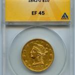 Us Gold $10, 1842-O Liberty Eagle, Ef45 Anacs4142022, 10875 (2 photos)