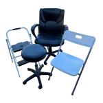 Assorted Chairs & Stool Lot – Office Chair, Folding Chair, Step Stool (2 photos)
