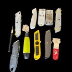 Mixed lot of handheld scrapers and utility knives in various styles and sizes.… Read More →