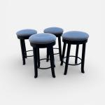Set of four swivel counter-height bar stools with black wood bases, circular… Read More →