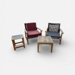 Four-piece outdoor patio set including two armchairs with removable cushions, a… Read More →