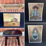 Lot 121: Vintage Farm House Decor - Wall Rack, Stool And Collection Of Artwork B (21 photos)