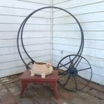 Lot 3: Metal Firewood Rack With Antique Metal Wheel, Wood Stool & Ceramic Turtle (11 photos)