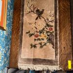 A Vintage Chinese Hand-Knotted Silk Rug/Runner With Birds On Dogwood Tree (3 photos)