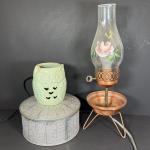 Lot 69K: Copper Base W/ Floral Glass Top Electric Lamp, Ceramic Owl W/ Hearts La (17 photos)