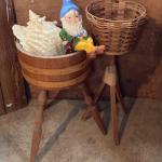 Lot 153: Vintage Wooden Plant Holders With Ceramic Gnome And Large Seashell (21 photos)