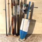 Lot 155: Vintage Nautical / Fishing Collection - Wood Buoy With Fishing Rods / R (21 photos)