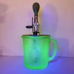 Lot 99K: Vintage Uranium Glass 4-Cup Measuring Pitcher W/ A&J Hand Mixer (4 photos)