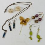 Earring and necklace set, butterfly stick pin, and 3 other sets of earrings.… Read More →