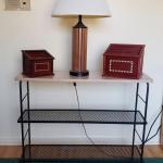 Lot 53Y: Metal Shelf With Mcm Gruvwood Table Lamp & Wooden Desk Organizers (14 photos)