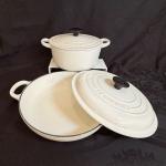 Lot 42: Le Creuset White Enamel Cast Iron Casserole Dishes / Dutch Oven With Lid (7 photos)