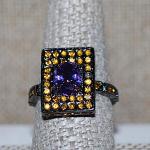 Size 6 Marked .925 Interesting "Purple On Amber" Rectangle "Panel" Of Stones Rin (4 photos)