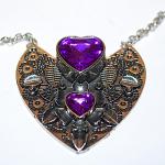 Double Purple Hearts Necklace / Pendant Combo (1½" X 1½") On A Metal Cut-Out H (4 photos)
