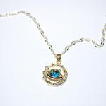 Flat Link Chain "Under The Sea" Necklace / Pendant Combo With Jeweled Circle & H (4 photos)