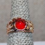 Size 7½ Bright Red Round Glass Stone Ring With A Cut-Out Gold Tone Open-Ended B (4 photos)