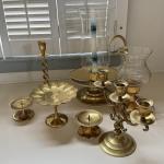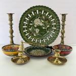 Lot 136F: 2 Pairs Of Vintage Brass Candlesticks, Signed Moriage Bowls, Hand Pain (22 photos)