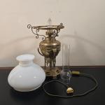Lot 114Z: Vintage Art Nouveau Style Electrified Brass Oil Lamp (18 photos)