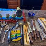 Variety of kitchen knife’s , place mats , salad spoon and fork… Read More →