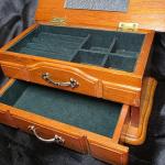 Vintage Oak Dresser Style Jewelry Box With Mirror Ring Slots & Drawer Storage (5 photos)