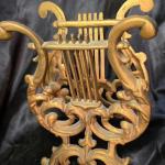 Vintage Lyre Harp Cast Metal Magazine Rack Hollywood Regency Gold Scrollwork (7 photos)