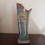This beautifully glazed vase has greens, blues and browns with a stamped feature… Read More →