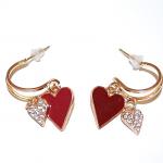 Double HEARTS EARRINGS with Red Enamel + Jeweled Smaller Heart in Gold Tone… Read More →