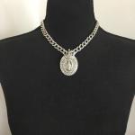 Vintage Virgin, Mary, Silver Toned, Oval Pendant, Clear Crystals Encrusted, Cuba (4 photos)