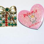 Collection Of 4 Tacks/Pins Including Heart, Snowman, Bejeweled Gift And Flower (2 photos)