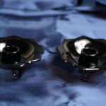 1930's Black Amethyst Candle Holders Pedal Edge Footed 4 1/2" X 1 1/2" (3 photos)