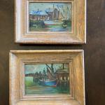 Matched Pair Mid-Century Original Oil Paintings – New England Harbor Scenes By (5 photos)