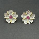 Earrings 925 Silver-Tone, Gold-Plated, Natural Raw Pink Tourmaline Gemstone (2 photos)