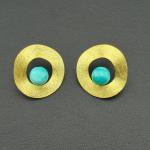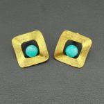 Earrings 925 Silver-Tone, Gold-Plated Natural Turquoise Gemstone (2 photos)