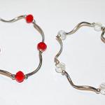 Collection Of 4 Curved Wire Elastic Bracelets (2¼" Opening) With Clear/Red Bead (1 photo)